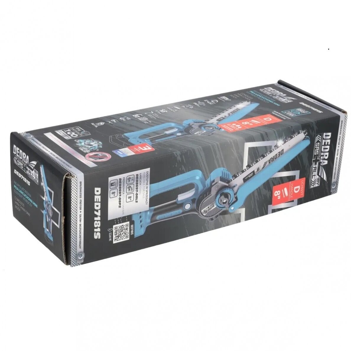 Mini grandininis pjūklas DEDRA DED7181S yra SAS+ALL sistemos dalis, kuri leidžia naudoti vieną akumuliatorių keliems DEDRA įrankiams. Tai leidžia vartotojui laisvai naudoti tą patį akumuliatorių įvairiems įrankiams, pvz., žoliapjovėms, gręžtuvams, šlifuokliams ir kitiems tos pačios serijos įrankiams. Tokia sistema ne tik taupo vietą, bet ir padeda sutaupyti laiką ir pinigus, pašalinant poreikį pirkti atskirus akumuliatorius kiekvienam įrankiui.