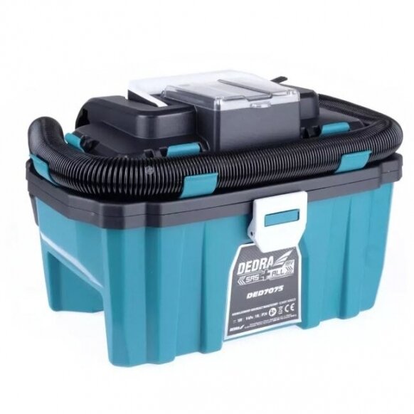 Dėžutės tipo akumuliatorinis dulkių siurblys DED7075 yra skirtas sausam ir šlapiam darbui (vandens ištraukimui). Prietaisas turi efektyvų šepetėlių variklį. Talpykla yra 10 l talpos ir pagaminta iš patvaraus plastiko. Patogi rankena ir pagrindo ratai užtikrina patogumą dirbant ir palengvina transportavimą. Dulkių siurblys turi plaunamą HEPA filtrą – filtrų valymas dar niekada nebuvo toks lengvas. Pakanka nuplauti vandeniu, kad būtų atkurtos aukštos filtravimo savybės. Be to, DED7075 dėžinis dulkių siurblys turi smūgio funkciją, kuri leidžia išvalyti sunkiai pasiekiamus paviršius nuo dulkių, lapų ir kt.