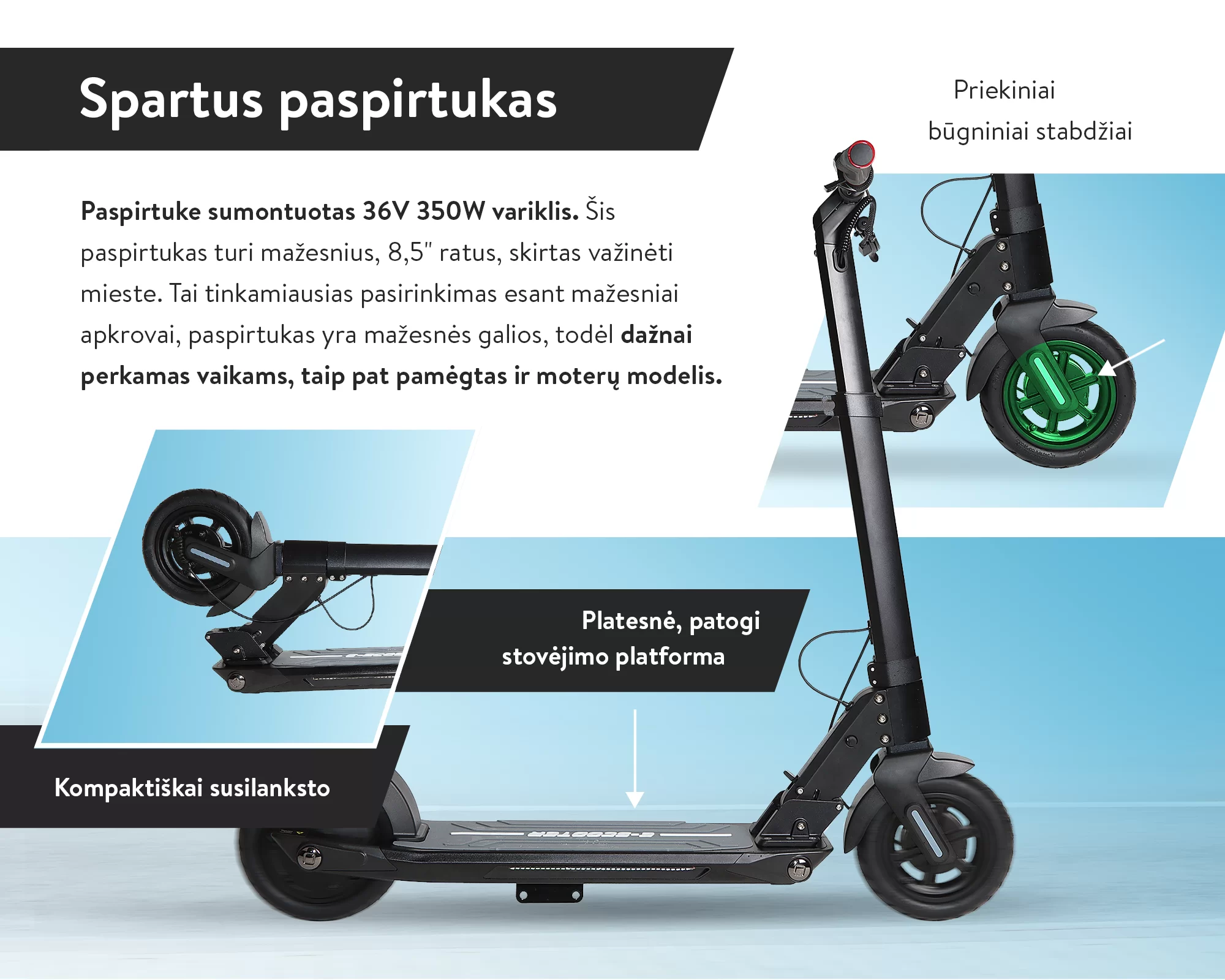 Variklio galia: 250W, galinis ratas varomas