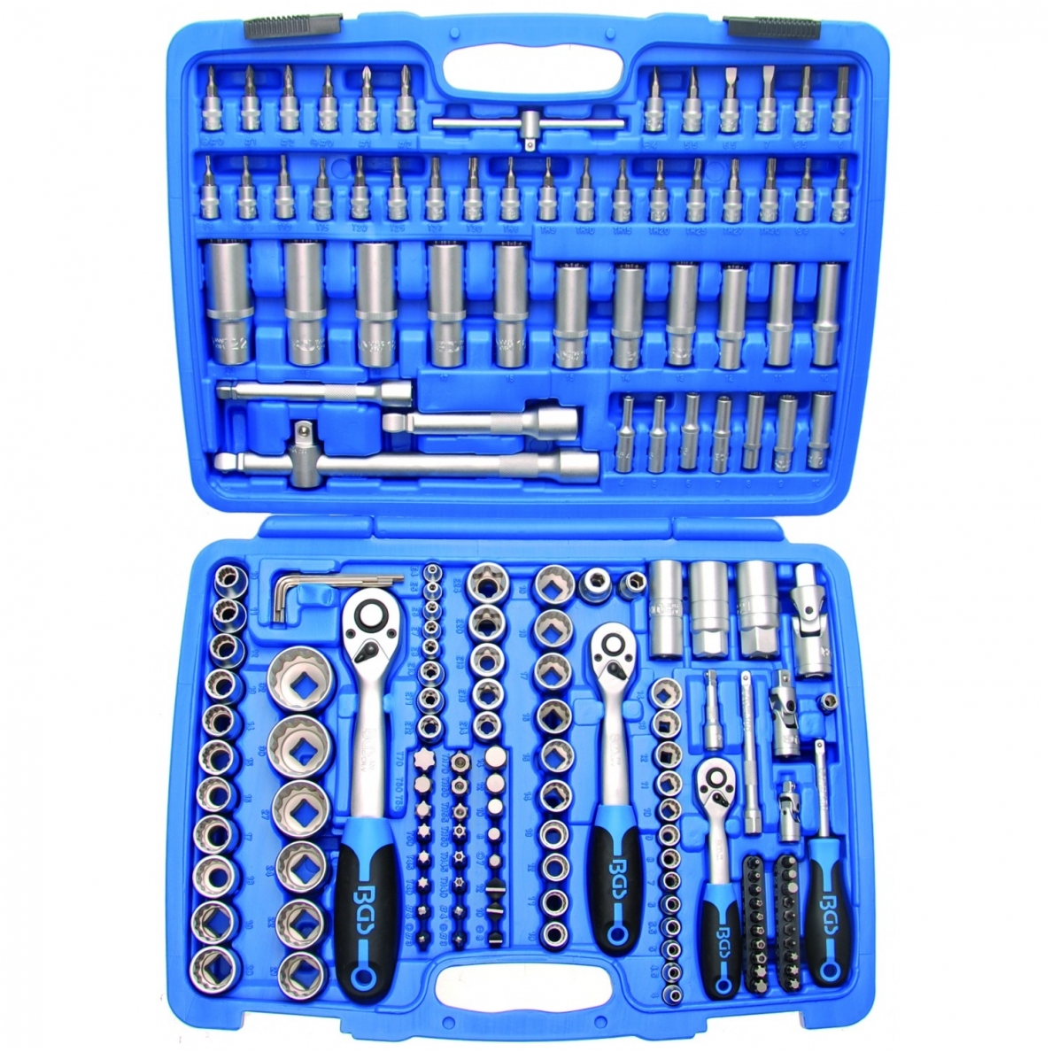 Galvučių ir raktų komplektas 1/4″+3/8″+1/2″, 12-kampės galvutės, 171 vnt. 2286