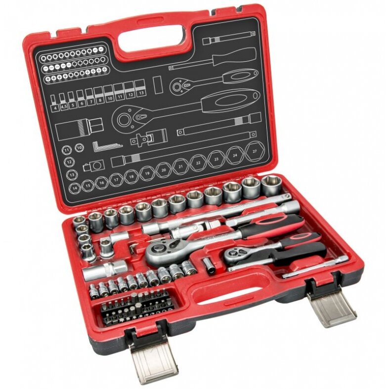 • 16 vnt., galvučių 1/2″ : 10, 11, 12, 13, 14, 15, 16, 17, 18, 19, 20, 21, 22, 23, 24, 27 mm