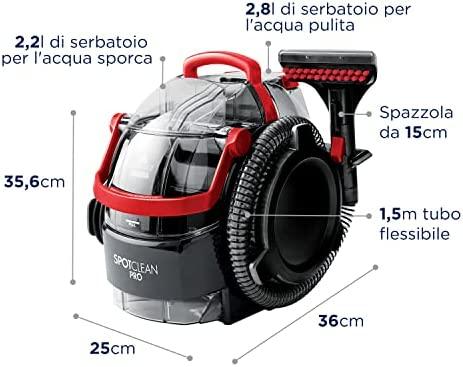 Su „BISSELL® SpotClean TM Pro“ dėmės ir sutepimai išvalomi per kelias sekundes, kad ir kur jie būtų. Platesnė šepečio galvutė ir didesnė, ilgesnė žarna su šiek tiek didesne galia padidina našumą, palyginti su kitomis asortimento priemonėmis. Lengva, nešiojama konstrukcija leidžia pašalinti dėmes nuo laiptų ir apmušalų bei kilimų ir kiliminių dangų. „SpotClean Pro“ komplektuojamas su itin ilgu maitinimo laidu ir įvairiais šepečiais, kad būtų galima pašalinti „ką tik atsiradusias“ dėmes ir senesnes įsisenėjusias dėmes, kad ir kur jos atsirastų.