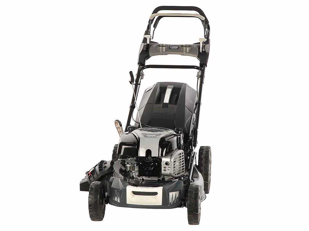 53 cm pjovimo plotis leidžia greitai ir tiksliai apdirbti, o Briggs & Stratton 4 taktų benzininis variklis, kurio darbinis tūris yra 161 cm³ ir nominali 5,5 AG, pasižymi dideliu galios ir patikimumo našumu.