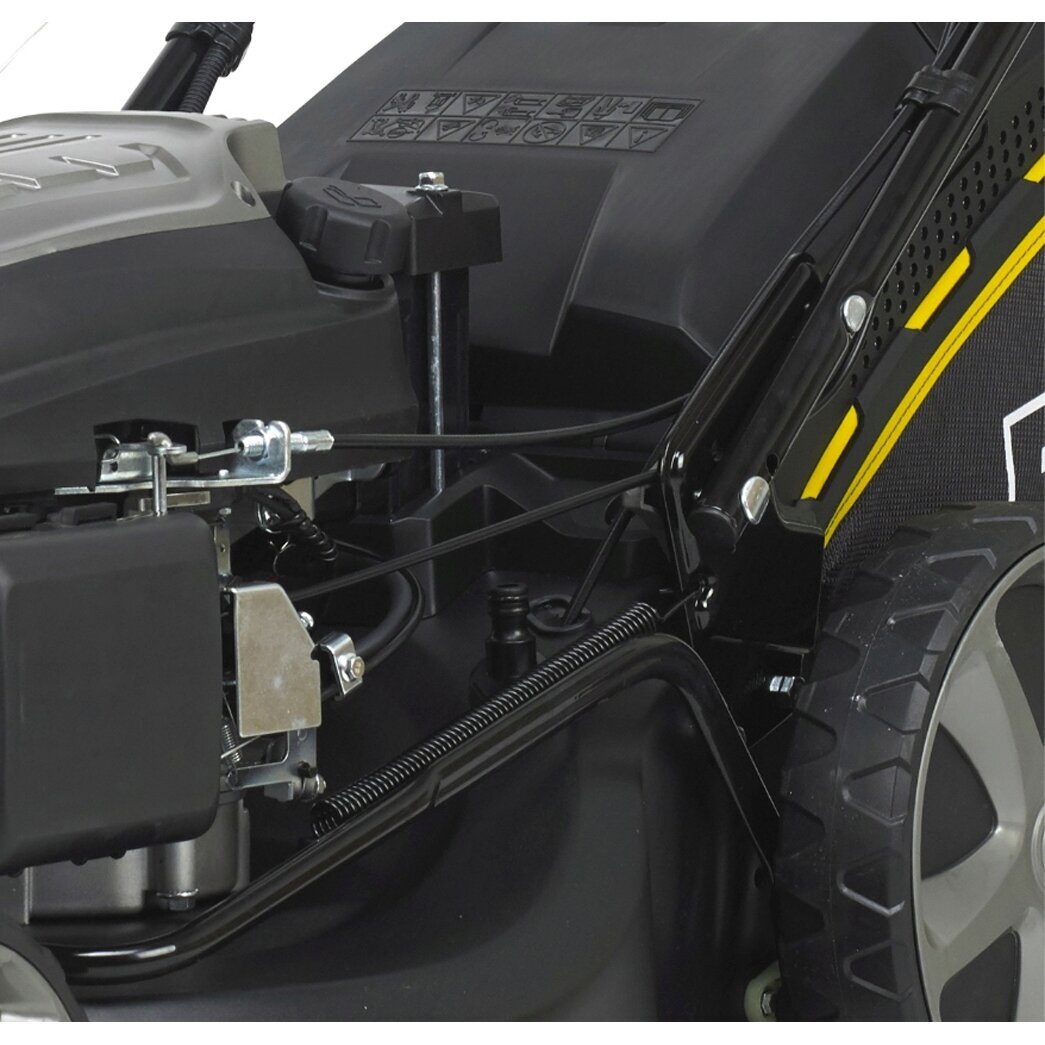 Vejapjovės pjovimo plotis – 51 cm, o pjovimo aukštį galima greitai ir lengvai sureguliuoti 6 skirtingose padėtyse (nuo 28 iki 75 mm). 3 skirtingi pjovimo metodai – surinkimas, galinis išmetimas bei mulčiavimas. Didelis 65 L žolės surinkimo krepšys su pripildymo indikatoriumi leidžia stebėti surinkimo krepšio užpildymo lygį.